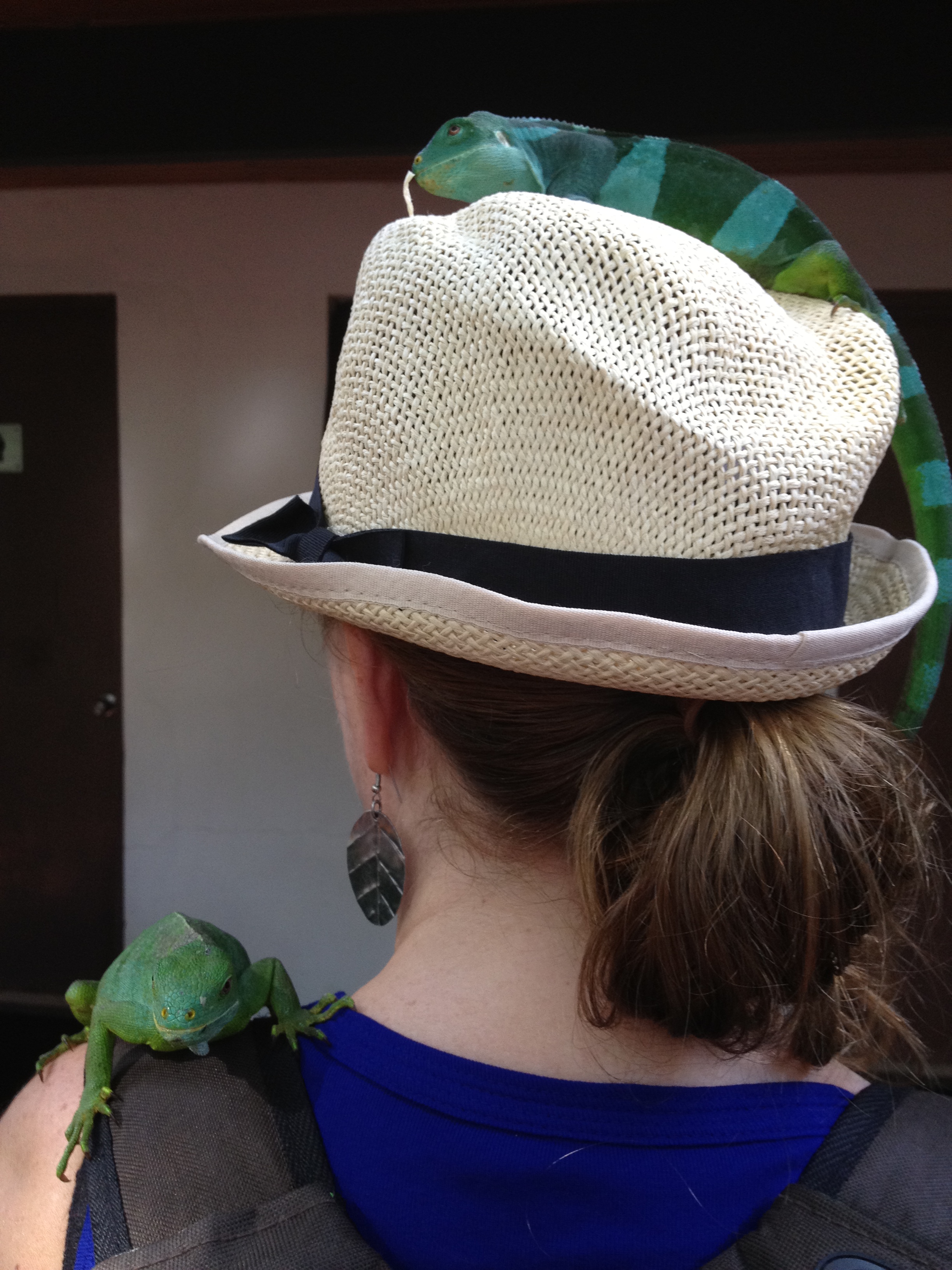 The next day I meet Fred, Fiji’s rare crested iguana at the Kula Ecopark Fiji. This is Fiji’s only wildlife park and facility for the breeding of endangered species as well as the only free environmental educational facility for school children. Lounging lizards not your thing? Well you can also cuddle a boa constrictor, or simply wander through this lush acreage punctuated with turtles, birds and bats. Chantay wraps the baby boa around her arm and it gives her a little nip, Laura has gone all jungle-girl in leopard print and lipstick, I’m thinking about sex, and Shannon is talking about lunch.
