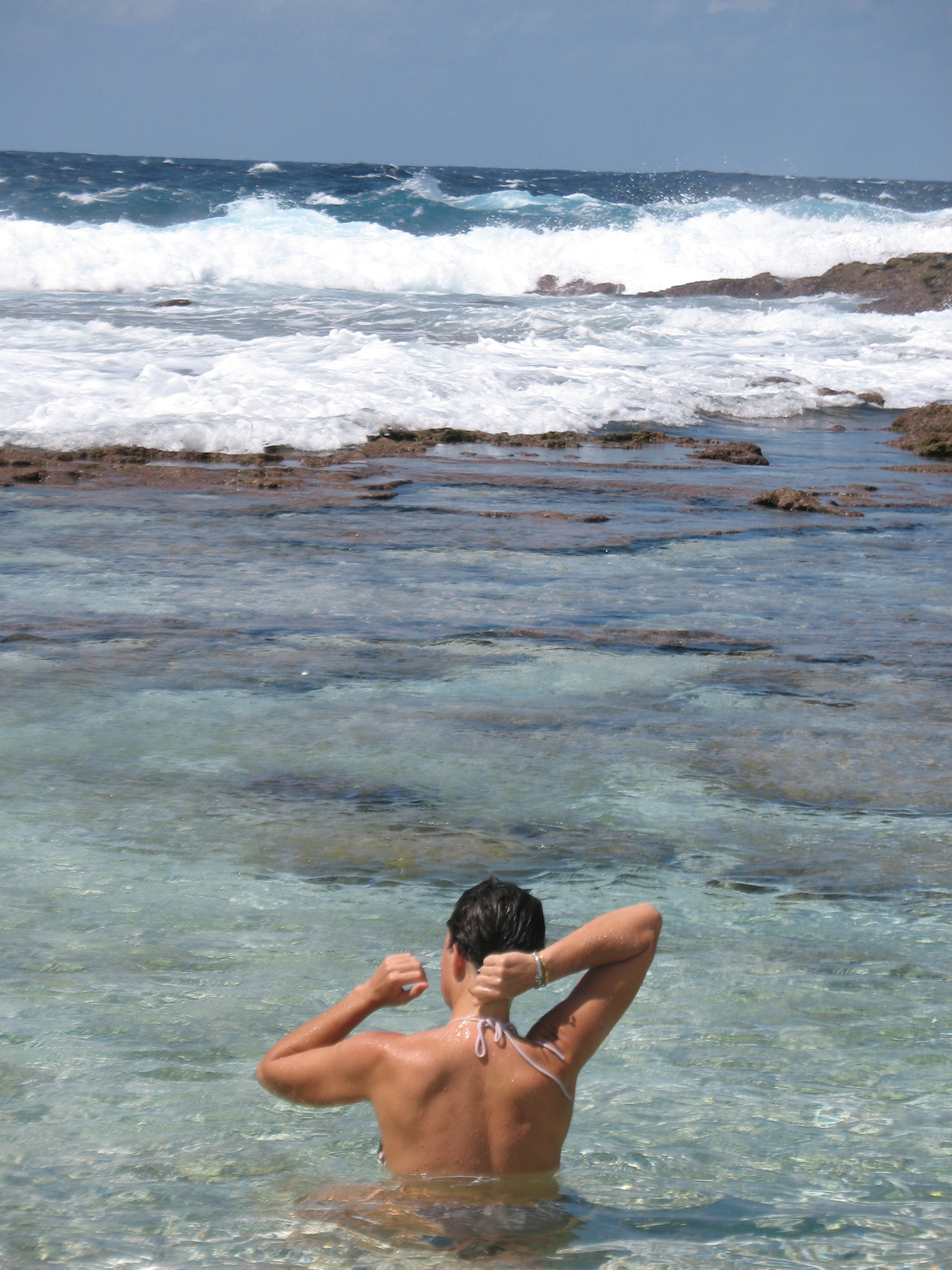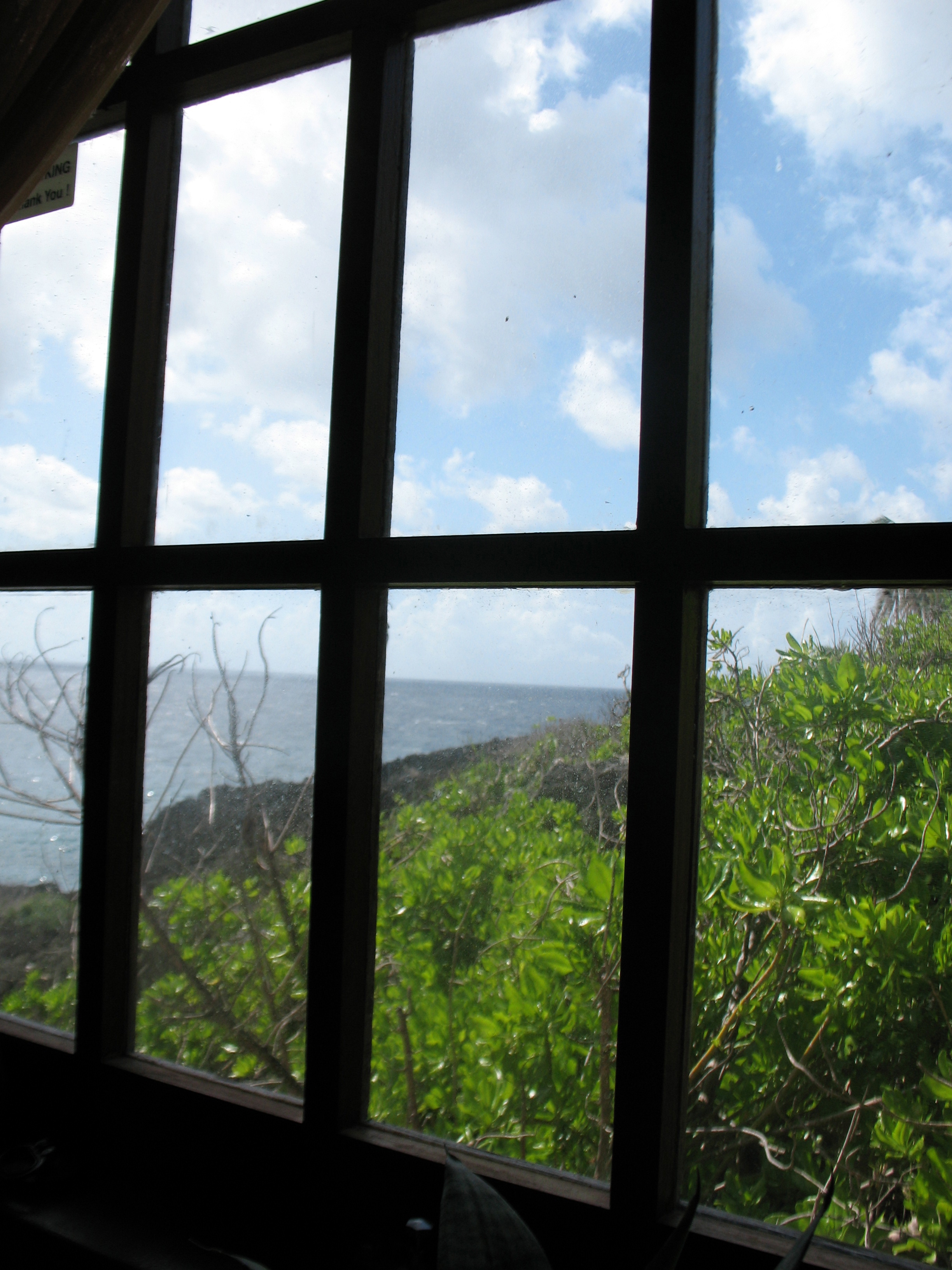 Off the boardwalk between Lily and Ethel beaches, we stumbled across the island’s brown boobies displaying their white pinafores like nuns while nesting among sharp limestone rocks.