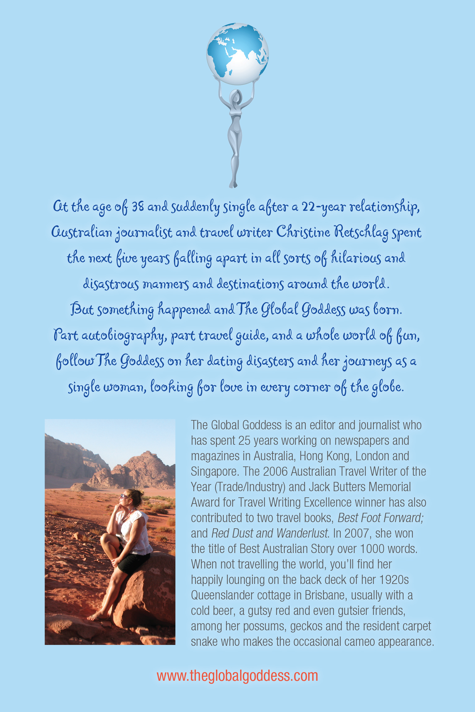 Destination Desire – The Global Goddess, a single woman’s journey, is available as an eBook via Amazon and via a limited-edition print run from The Goddess herself at Christine.retschlag@theglobalgoddess.com