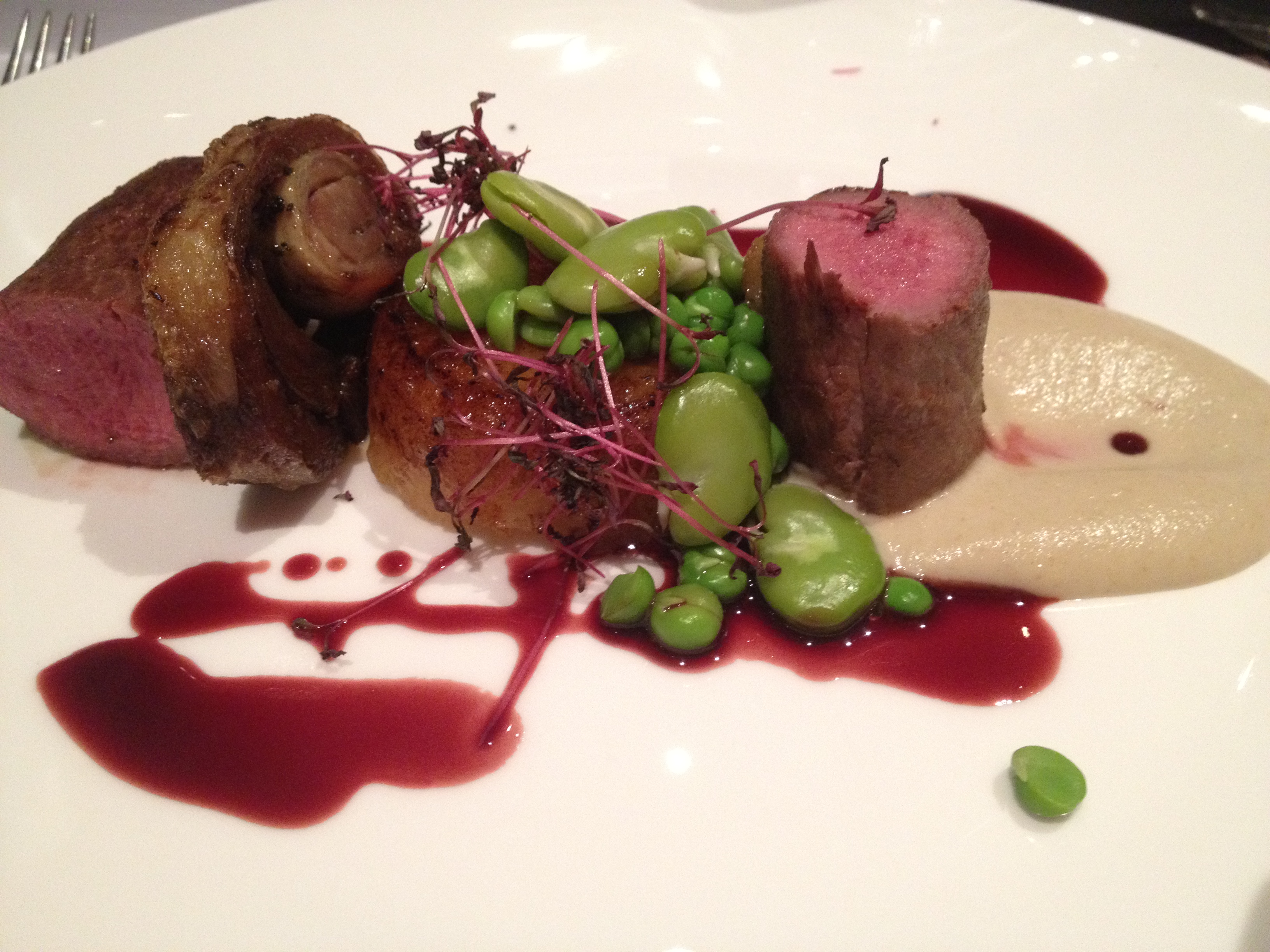 Main meal, if there is such a thing in a six-course production, is a lamb loin, crispy lamb breast terrine, broad beans, sunchoke puree, pommes fondant and anise jus. The sweet liquorice flavour of aniseed was believed by both the ancient Romans and Greeks to strengthen female sexual arousal. Now, we’re getting somewhere.