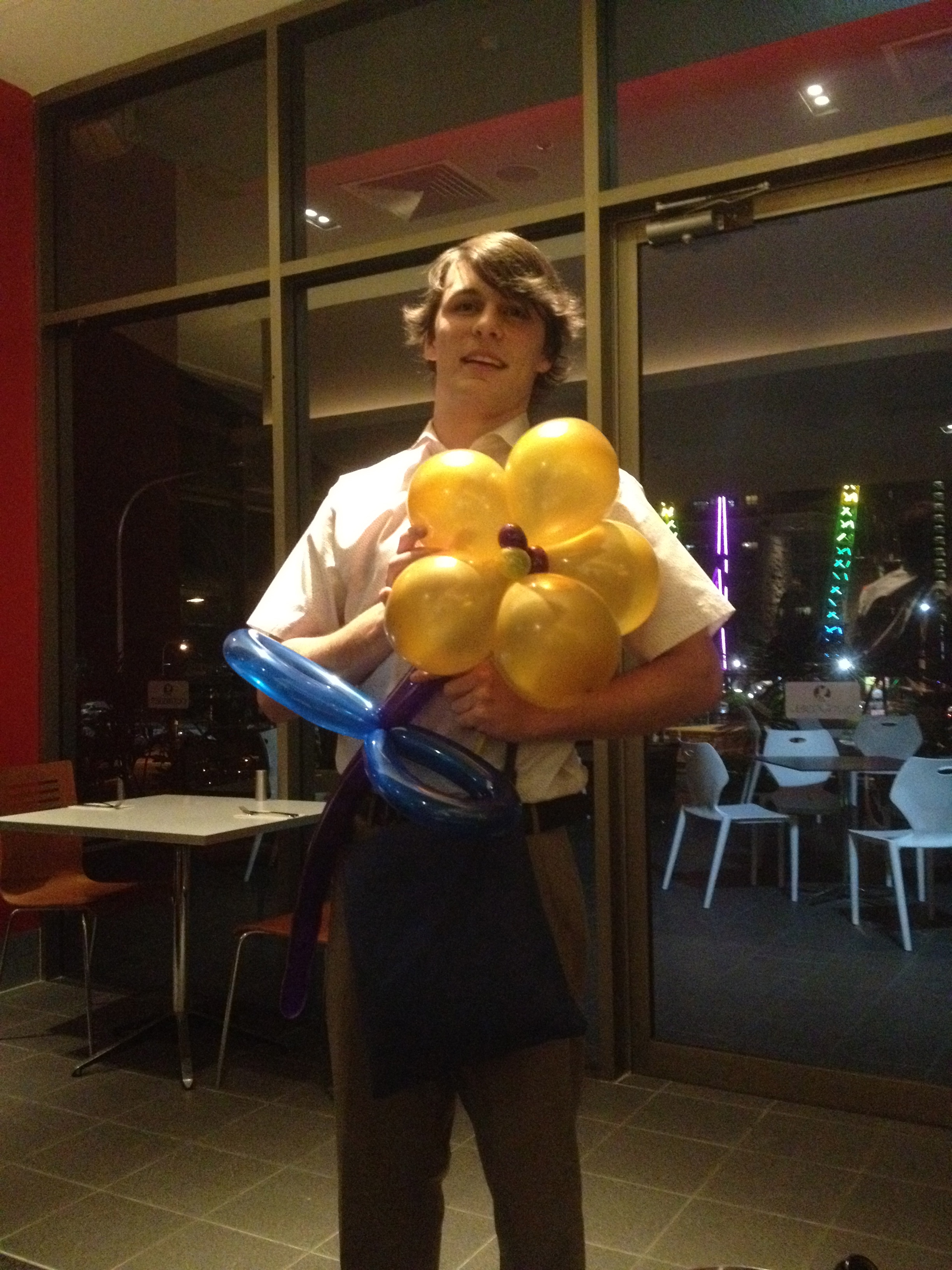 But the best is yet to come, as our waiter for the evening is Outrigger Surfers Paradise Staff Member of the Quarter Jason, aged 21. At first I think it’s for his impeccable service and incredible manners, but when he pulls out a bag of balloons and starts crafting them into all manners of objects, I realise we are in the company of a genius. And not only that, Jason actually ran away from home at 13 to join the circus, performing with the likes of Cirque de Soleil. For the record, I hate clowns, particularly those of the circus and dating variety. Thankfully this impromptu act has nothing to do with men with big red noses, bow ties and floppy shoes (my latest dates), but pure skill. Jason quickly crafts a colourful flower bracelet which he places around Corina’s wrist, before he makes the gigantic flower that will that night become my bed companion and the source of my confusion the next morning.
