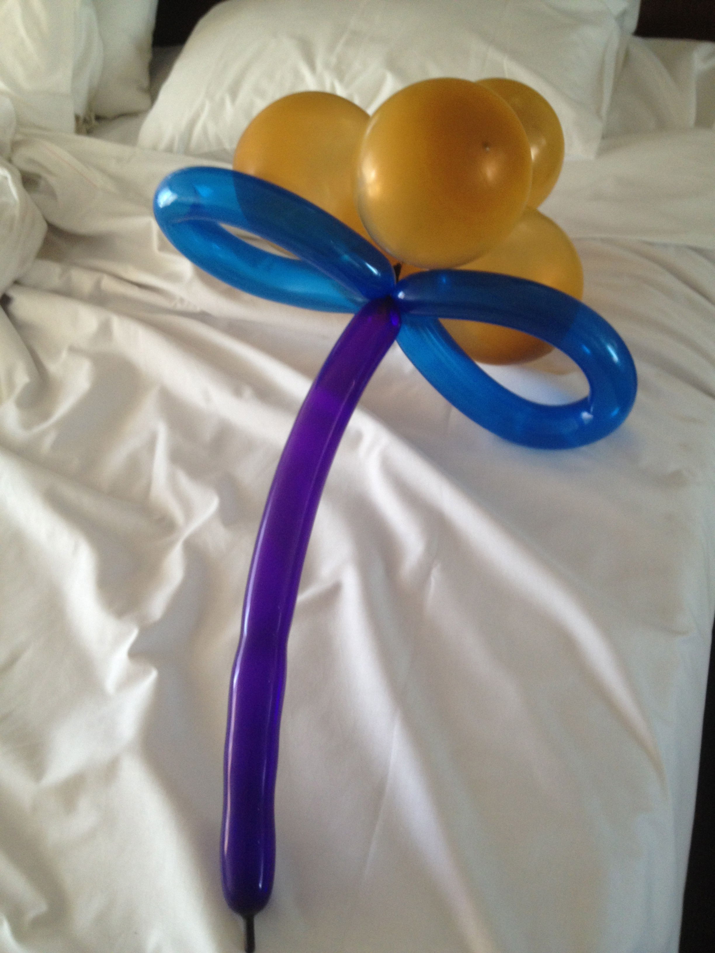 And here I am yet again, but on this occasion I have the hangover from hell, the origins of which I am acutely aware, but more curiously, a gigantic flower made entirely from balloons, laying beside me in bed. I squint at the flower and seriously have no idea from where this latest prop in my ridiculous life has sprung. I wrack my brains. Did I date a clown last night? Or worse, did I run away to the circus only to be rejected when they realised my serious lack of skills? What. The. Hell. Has. Happened?