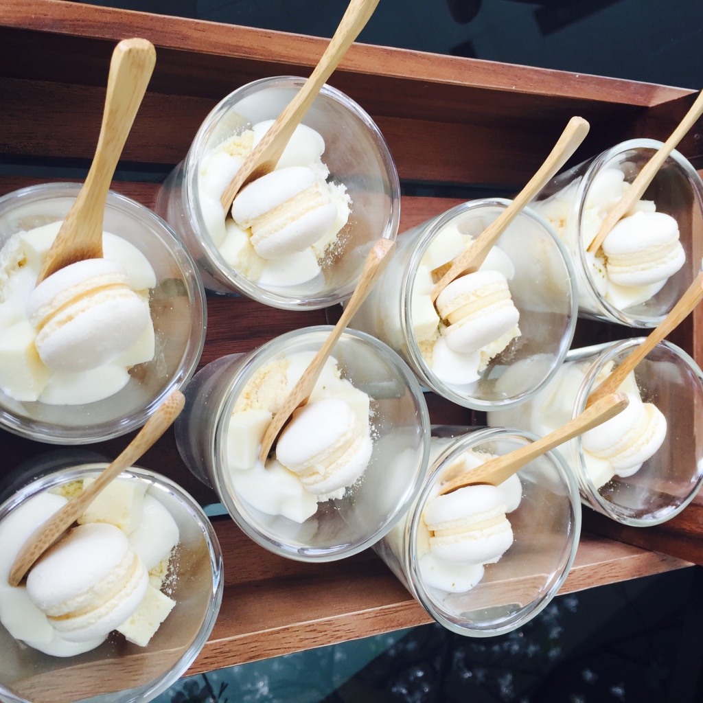 Possibly my favourite course of all, not only because it’s sweet but also due to its description, is the Gorgeous Geisha Dessert of Fruit Sushi: Crepes, Rice Pudding, Mango, Coconut and Strawberries; and Lychee & Honey Mousse, Vanilla Bean Coral Sponge, White Chocolate & Green Tea Crumble, and Almond Milk Jelly.