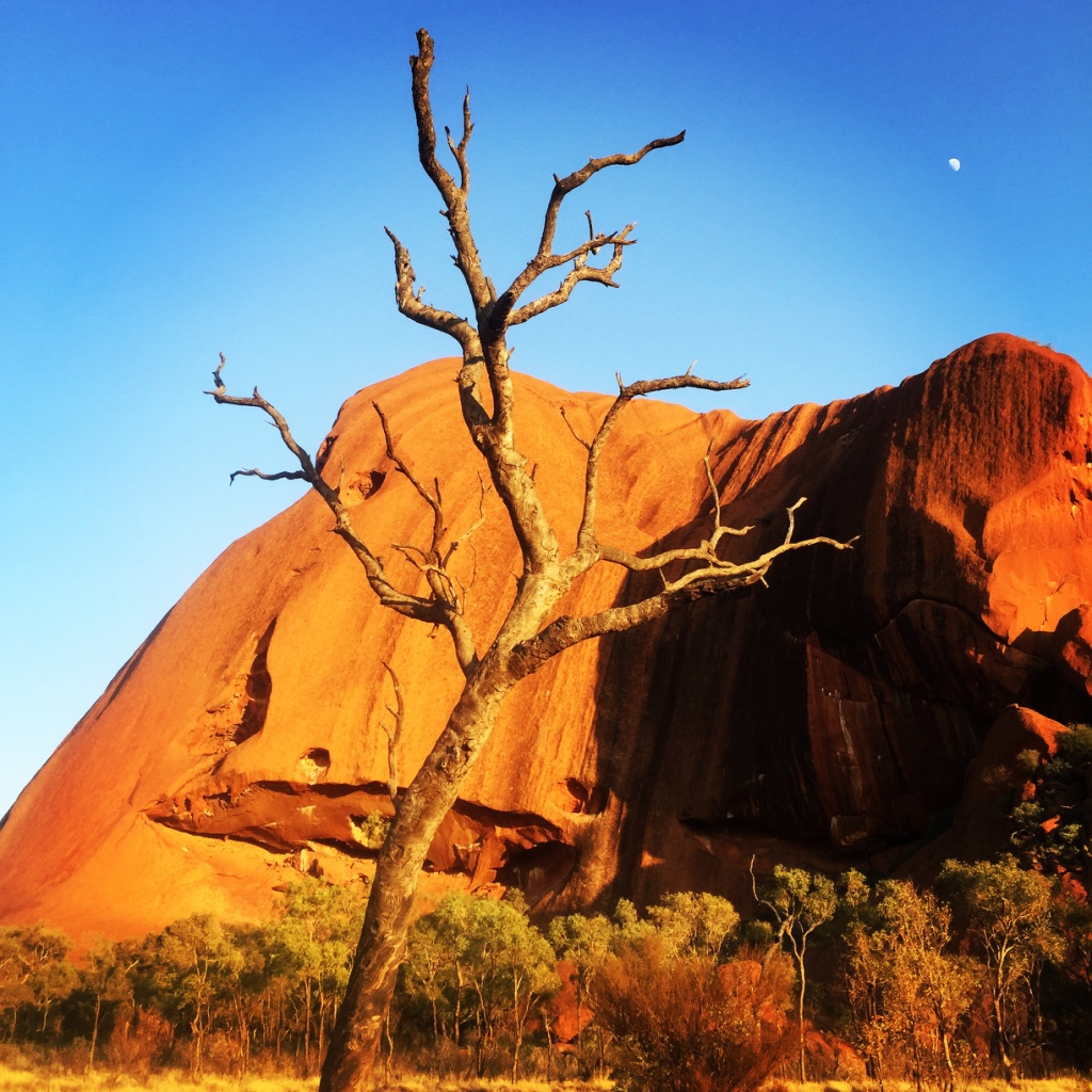 The next morning, I find myself standing before the massive monolith in the pre-dawn light, still no wiser about how to approach this story. How on God’s earth can I possibly capture the magic passed down among Australian Aborigines on the soil upon which I stand? I jot down the words “diversity and depth” and “caves and crevices” in my notebook. I could talk about the lilac hues as the first light hits the rock, but suspect that might be purple prose. I feel insignificant and to be honest, that’s humbling. This journey is not about me, or my story. It runs much deeper than that. I dine under the stars, searching for the constellations, but my writing mind is still walkabout.