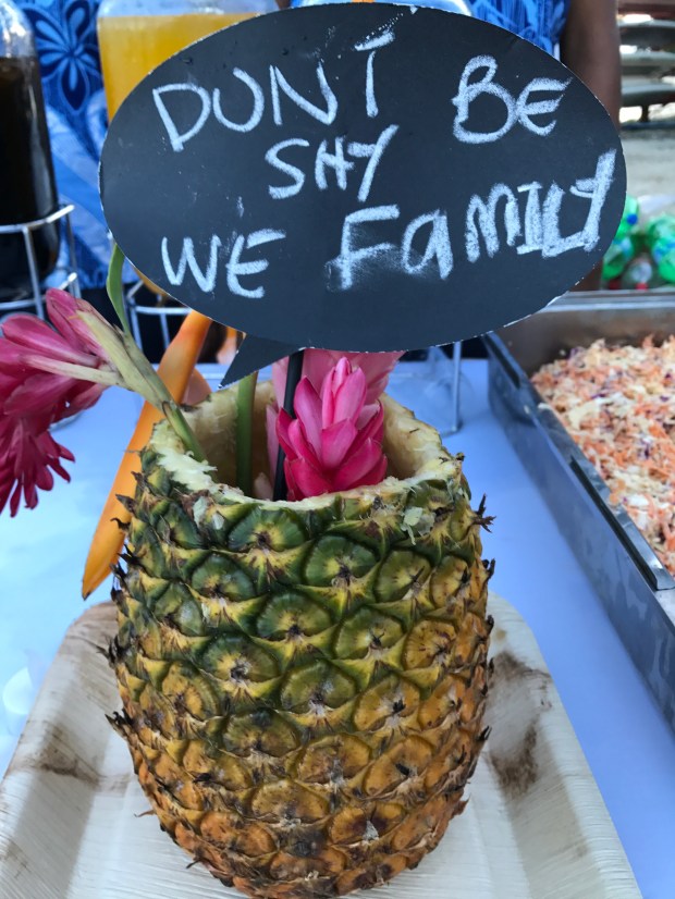 We all wept. We all danced in the sand to a live band. On the dance floor I was accosted by a Fijian man who introduced himself as Solomon and who offered to show me around the island. He kissed me on the cheek and then he disappeared into the night, never to be spotted again. Minutes later I was introduced to Sonny, one of the Fijian relatives to whom I suspect I had been promised in marriage. We shook hands and then Sonny declared he was off to “get drunk.” I have that effect on men. It was only two days later, over breakfast, that Pauliasi told me that there were scores of Fijian men at the wedding approaching him to ask about the blonde woman on the dance floor (me) and trying to muster the courage to approach her. Opportunity lost, fellas.