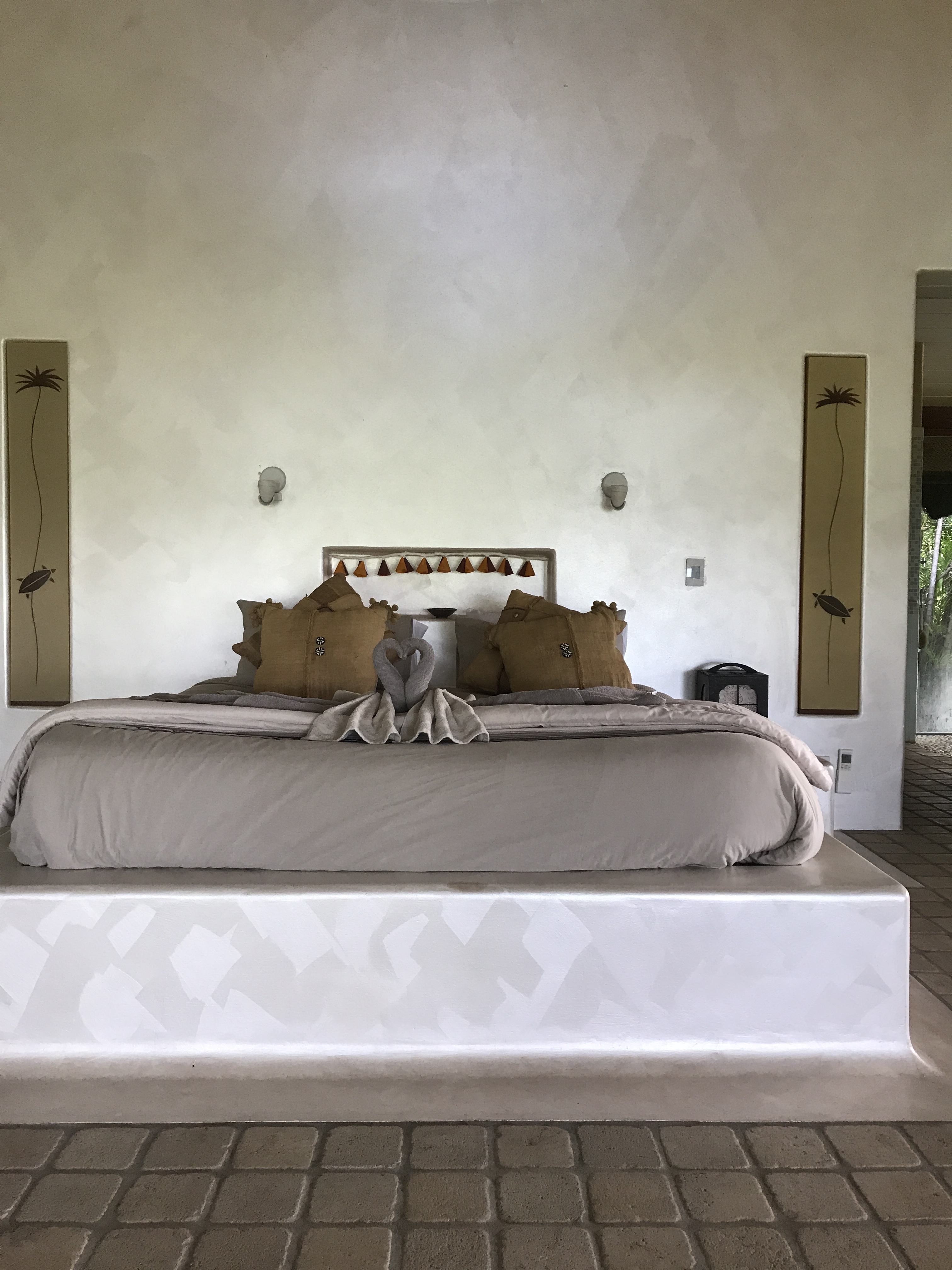 The most comfortable king-sized bed in which I’ve ever slept is the centerpiece of the villa which also houses plush day beds inside and a gorgeous swing chair outside from which you can watch the sun rise over the ocean. And the best bit, I can only hear the sound of screaming curlews late into the night, my backpackers scattered somewhere else around this bush property, which sits in Woodwark