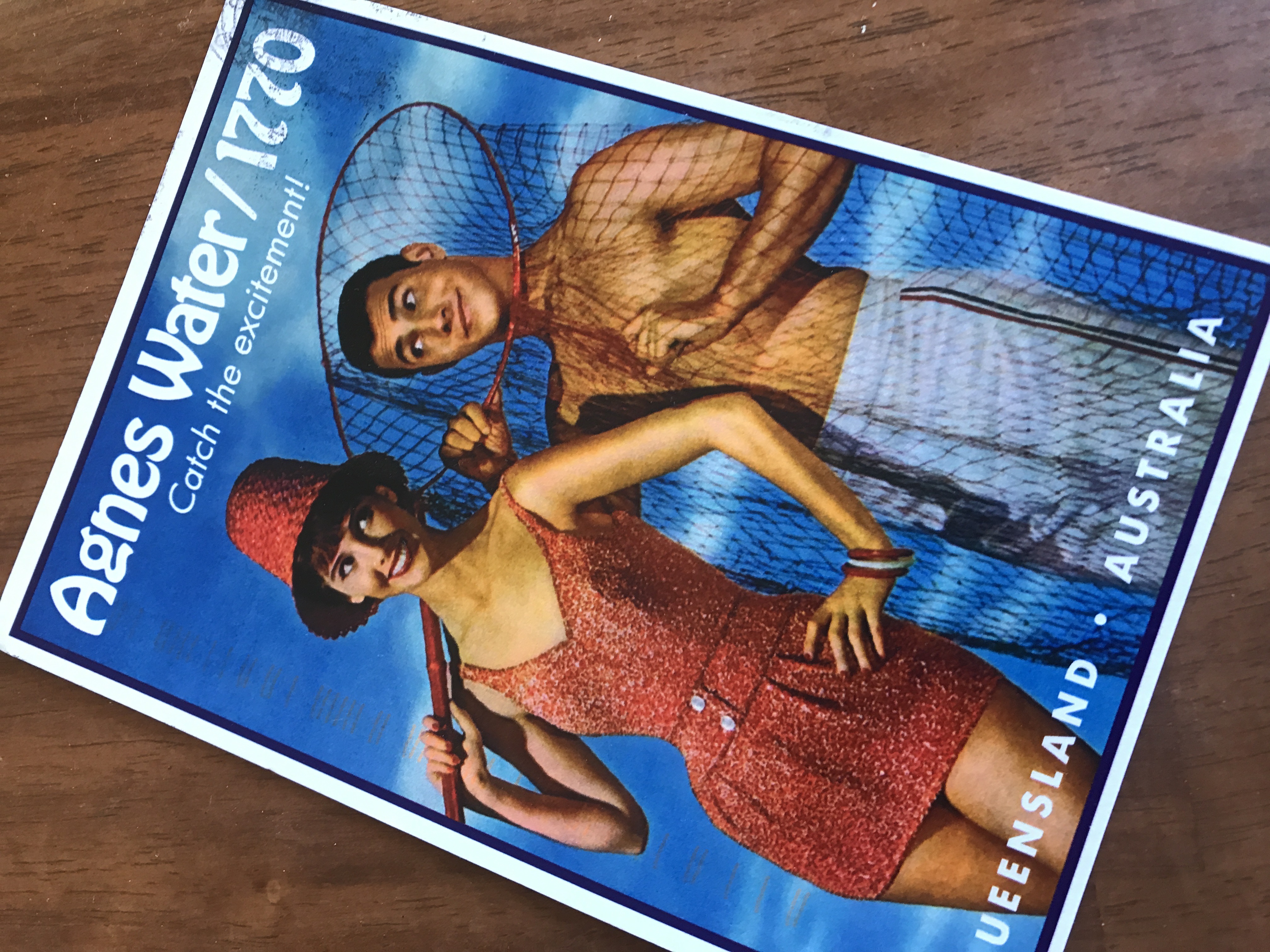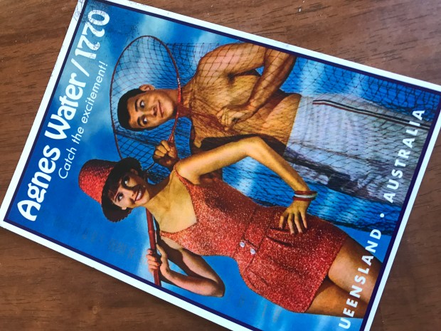Fellow Brisbane travel writer Lee Mylne, who hails from the Land of the Long White Cloud, kindly sent me “a little bit of Kiwi culture” in the form of a Maori male. Two months earlier, while travelling in our home state of Queensland, Lee sent the post card, which leads this blog, from Agnes Water. Yes, I caught her excitement and am off to get my own net for a spot of fishing…