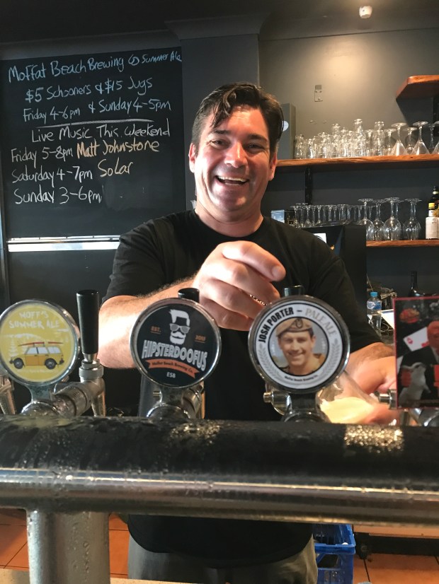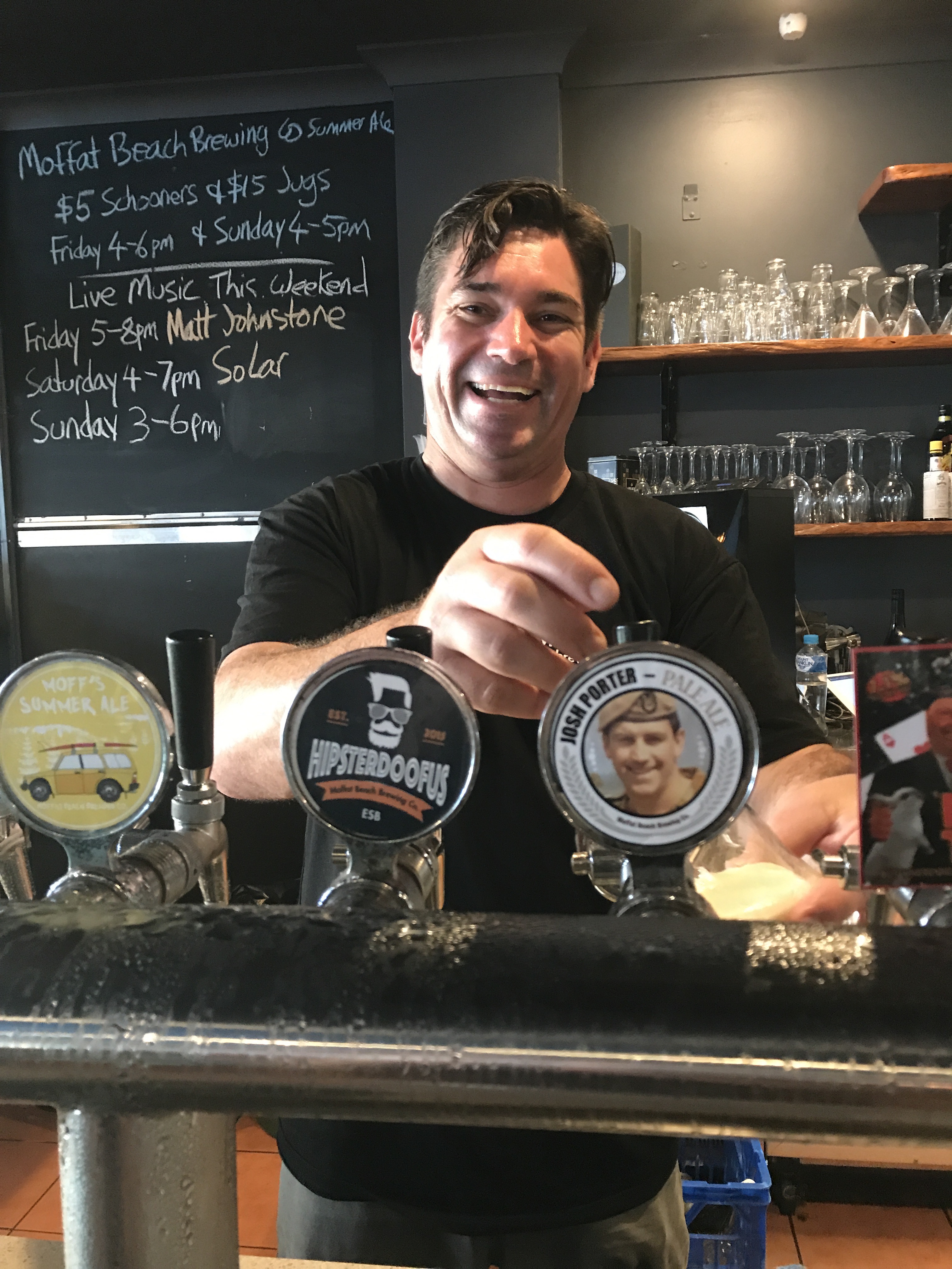Pull up a perch, have a coldie with Matt and watch the blue waters of Moffat Beach.