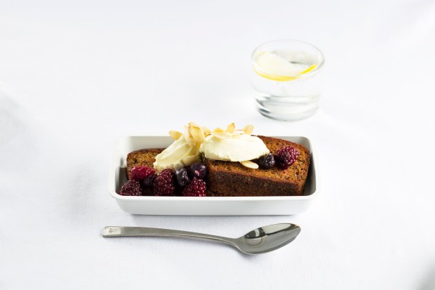 I also sampled two meals from the Premium Economy Class menu, the lamb with chilli and cumin, jasmine rice and stir fried Gai Lan, which was also a beautiful dish. The pesto fettucine with seafood mornay and panko parmesan crumbs contained fresh seafood, although I would have preferred a little greater mornay sauce/pasta ratio, something I’m sure their regular taste testers (yes, they have these) will pick up on.