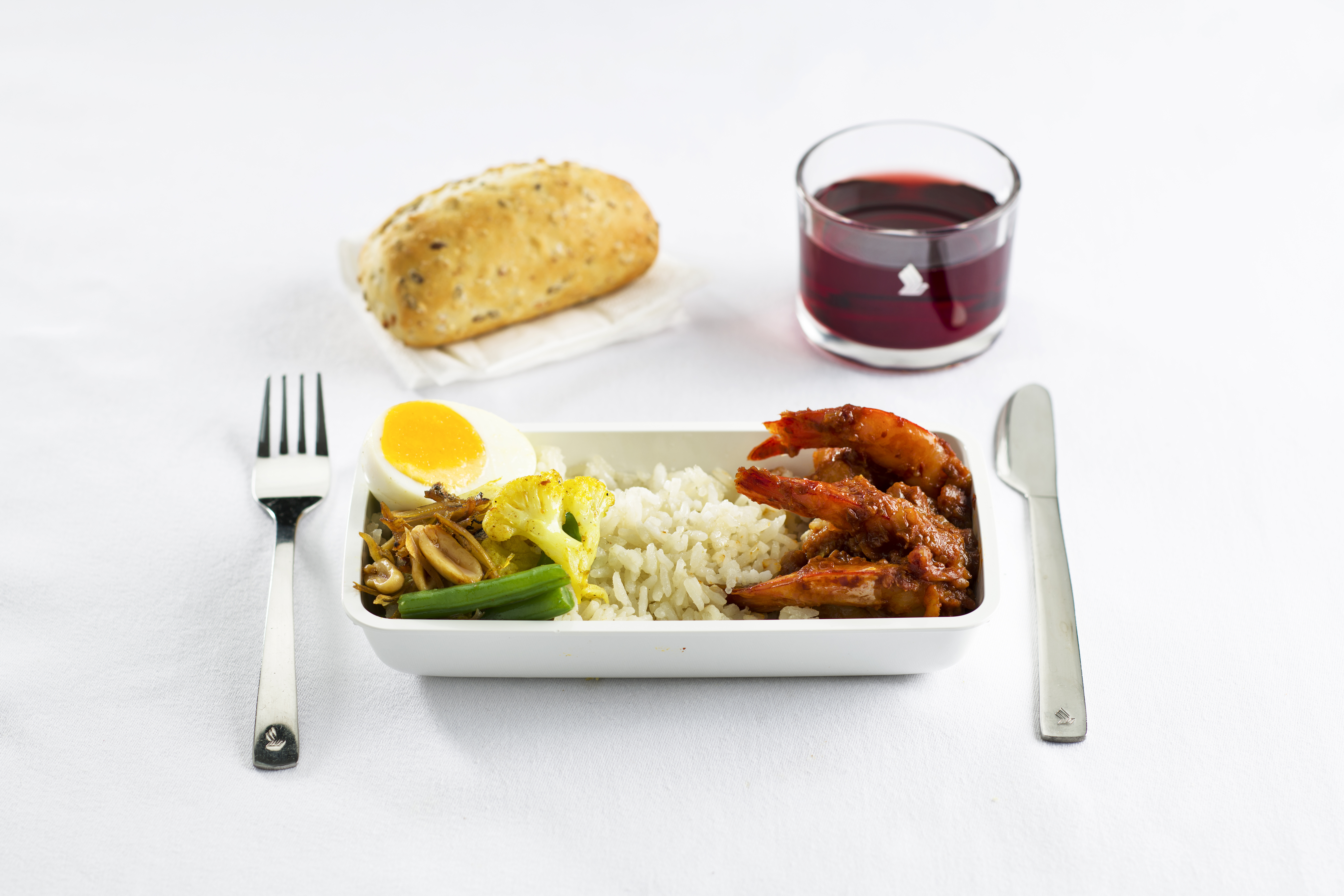In Premium Economy Class, you can also Book the Cook for some Hainanese chicken rice with chilli, ginger and choy sum; and Nasi Lemak with prawn, sambal and green beans with fried onions Ikan Billis and a half-boiled egg; among others.