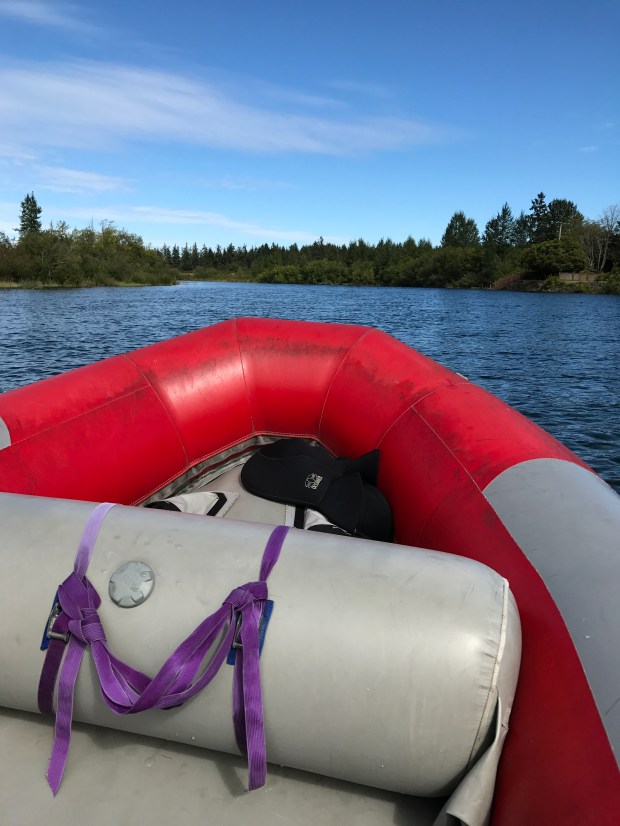 This was not in the brochure, I want to protest, but instead, I take the plunge, flying down the river like a super hero in a four-inch wetsuit, salmon whizzing past my face. At one point, caught in some whirling rapids, I think I may die, or at the very least, get hit in the head by a rock as it’s all just white water like I’m in a washing machine spin cycle. Then fear turns to bravado. How cool, I think, if I survive this, imagine explaining the gash and bruises back in Brisbane. I realise this is my very own dead pool. Perhaps Vince Vaughn needs an extra in his movie? I exit the rapids with a huge smile on my face. Jamie is sitting in the river raft grinning at me.