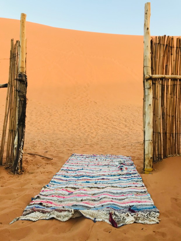 By the end of my journey I know about 13 Arabic phrases, one for every day of my trip. And I’m smitten. Arabic sounds as spectacular as it looks in its written form. A rush of long, curly sounds and words that stretch as far as the Sahara itself.