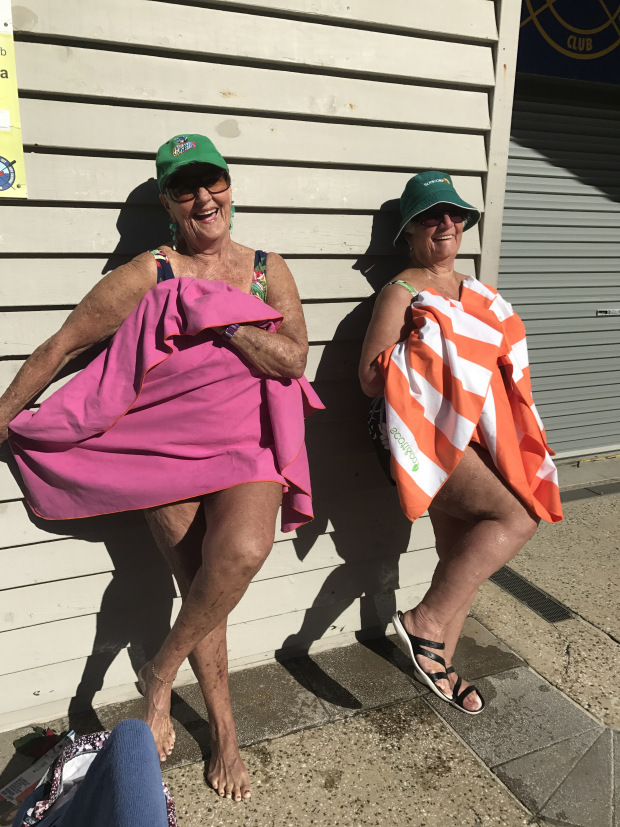 By August I was ready to go again, and after a brief trip to northern New South Wales, I attended the Australian Society of Travel Writers’ annual convention, which was this time held on the Sunshine Coast. On a beautiful winter day, while cycling along Caloundra, I bumped into these bathing beauties, who taught me you’re never too old and it’s never too cold, to swim, or laugh.