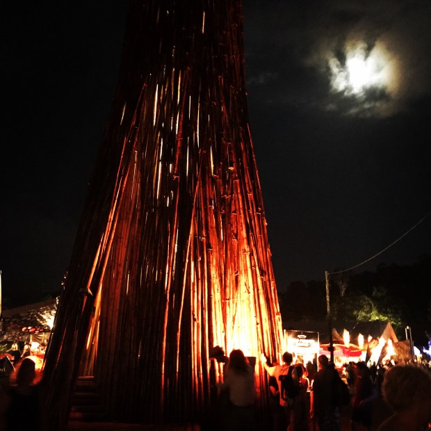 The fine folk of the Woodford Folk Festival have been leading the way with recycling for years and each festival, it just gets better and better. (That’s another thing I love about Woodford, you can go every year, and there’s always something different). I adored the giant bamboo structure in the guts of the ground; had a few lazy drinks in the Vinyl Lounge (think your grandmother’s living room); and adored the giant sculptures made from recycled materials.