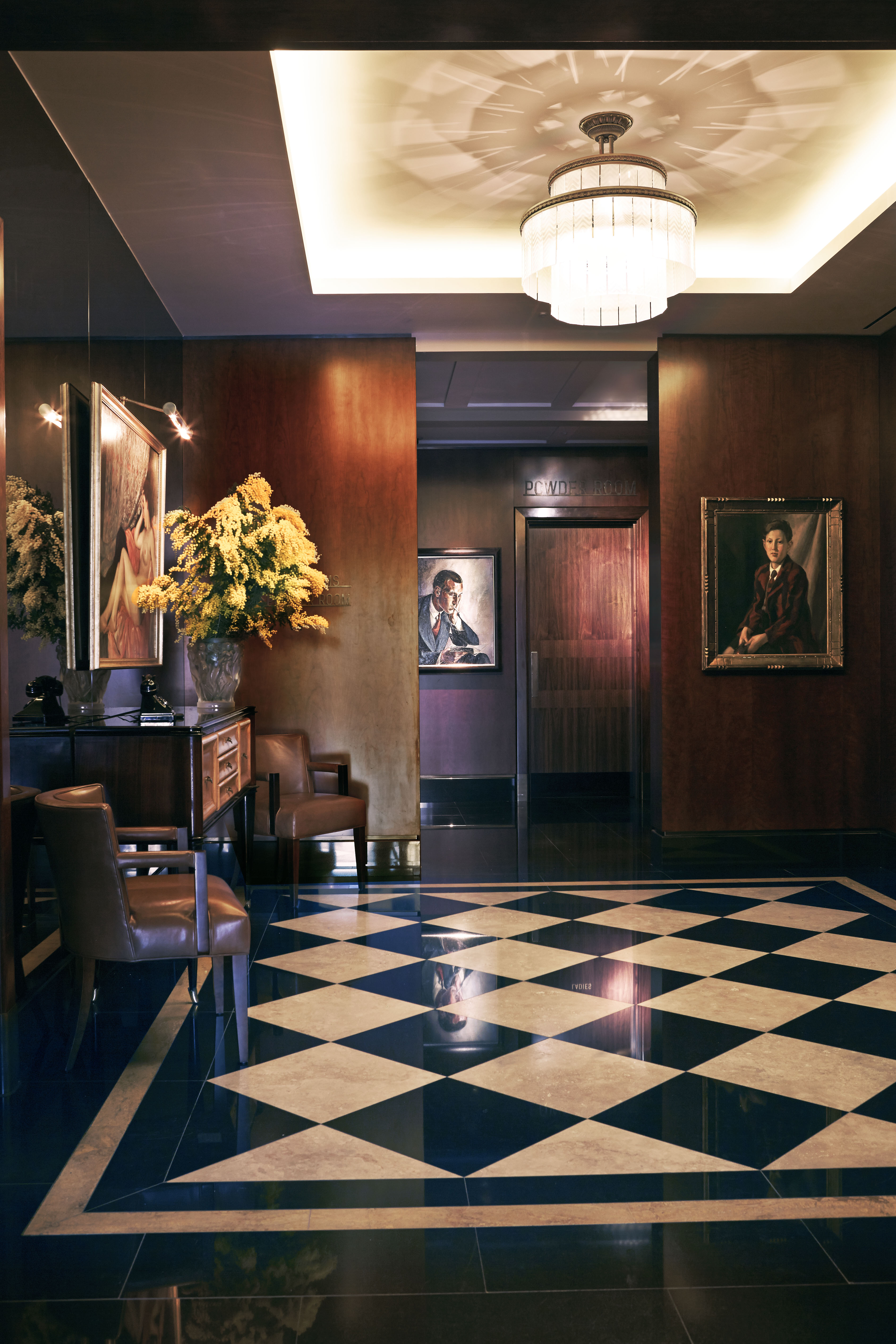 THE iconic ruby red British Beefeater gin guy is perched above the bar in which international accents are twirling around the room like Turkish dervish dancers. In one dark, moody corner, Americans are gushing about film making. The woman plonked behind me is all blustery and British, collapsing into a comfy chair with bags of designer shopping, immediately, and predictably, ordering a pot of English Breakfast tea. Around me, the walls are papered with black and white shots of screen starlets while above, a sparkling chandelier hangs from the ceiling.