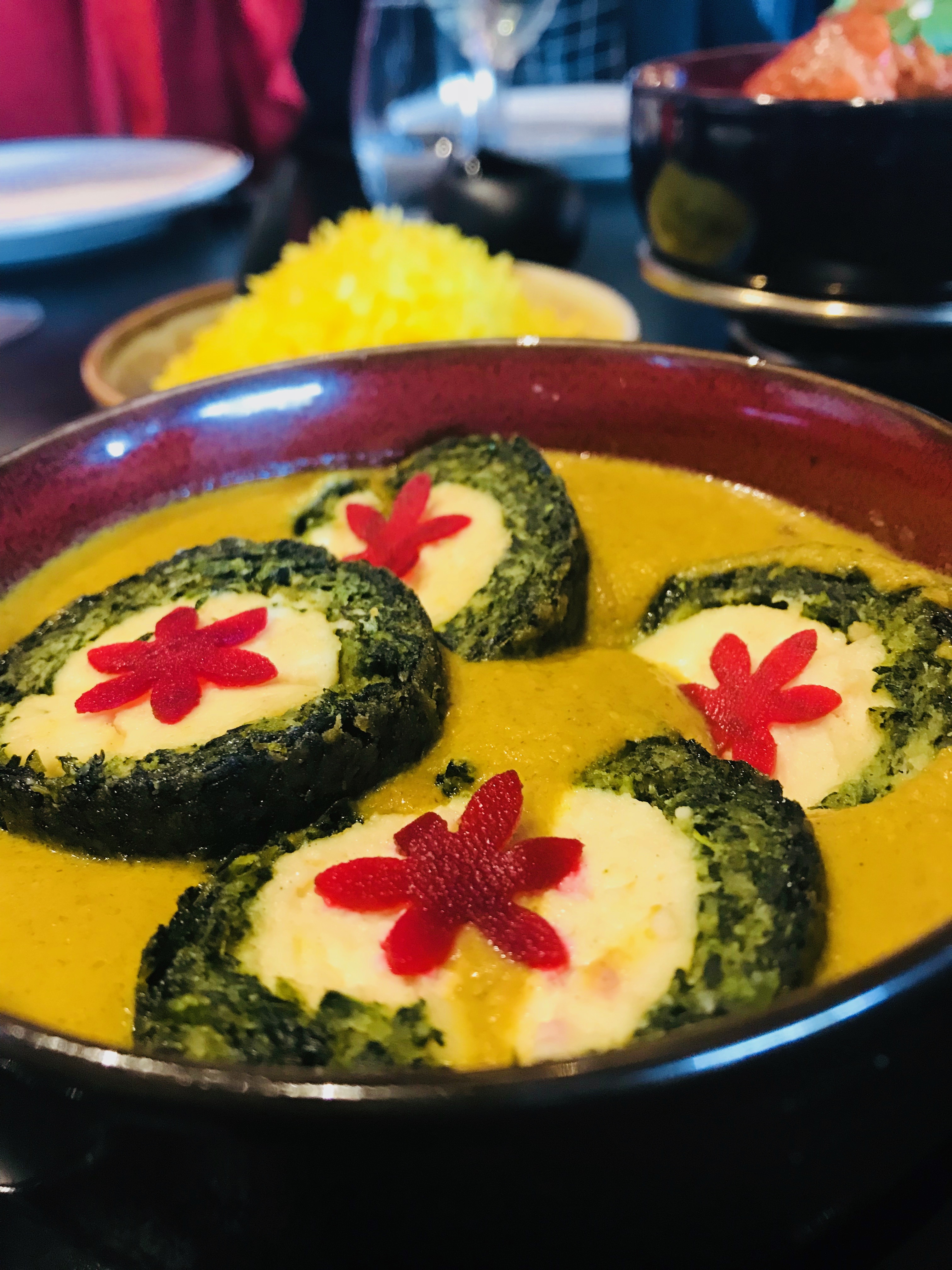 Outside, on the deck, it’s all breezy, blue cushions and river views, accompanied by a chic bar set up, while inside, it’s plush royal colours…purples, turmerics, navy blues, emerald greens, reminiscent of a Maharaja’s palace. The food here is fit for a king, with the pungent scent of the smoky tandoor wafting through this beautiful, big space, punctuated by voluminous, brick columns. While Michelin-star Chef Mural and his talented team weave their magic with the likes of chicken thigh, Thai basil, mint, rhubarb, zucchini, pineapple and kasundi from the tandoor, he pays homage to his homeland with his curries such as Kashmiri lamb, Goan fish, chicken Makhna, spinach kofta, black lentil dahl and vegetable masala.