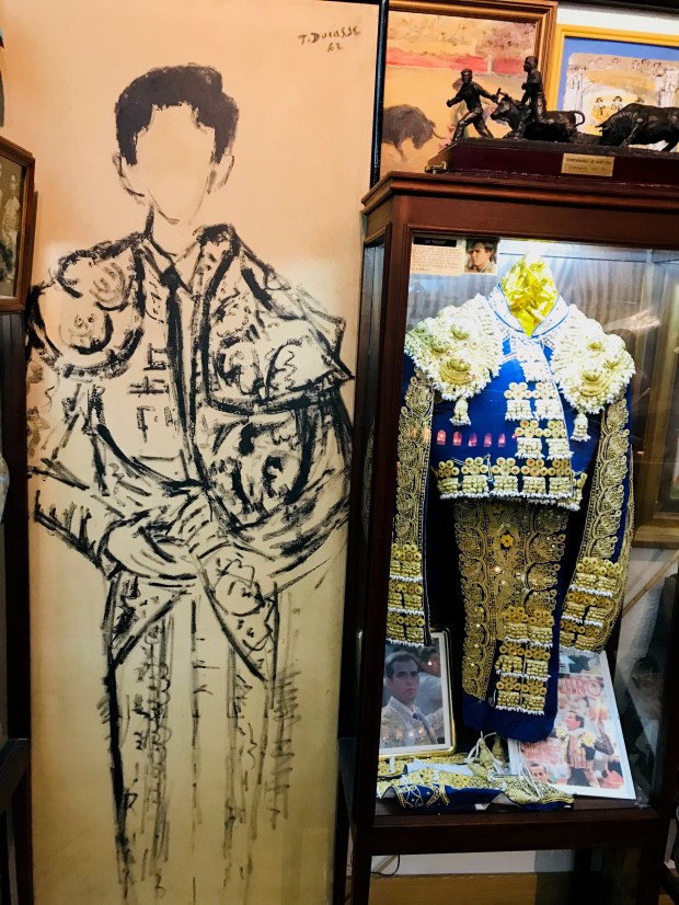 When he died 10 years ago, Marcelimo left behind two children, six grandchildren, and a deeply heart-broken wife. But his love of bull fighting lives on. On this particular day, and for the first time in her grieving journey, Maria has opened her house to our tour group. Behind this unassuming entry lays Spain’s largest collection of bull-fighting memorabilia. There’s those bull heads mounted on the wall, a replica bull ring crafted by her husband, magical matador capes and even a Salvador Dali painting. It’s a huge step for the Senora to open her house to strangers – these artefacts are usually only reserved for Spain’s bullfighting community – and both her courage and grief are palpable.