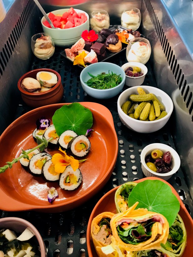 But before I board, I am ushered into Brisbane’s SilverKris Lounge, a place I last passed the Duchess of Cornwell, Camilla, who was in town earlier this year for the Commonwealth Games with Prince Charles. Camilla, bless her, took one look at me and sighed, just as it occurred to me from where I knew this familiar face flanked by police. I may not be a blue blood, but I am treated like royalty in the lounge, with staff remembering me from previous visits, enthusiastically encouraging me to try “every dish on the menu”. “But I’ve Booked the Cook onboard,” I plead. I defer and munch my way through the lounge’s Asian-inspired delights including delicious dim sum and some Aussie treats with a twist as well such as mac and cheese infused with truffles.