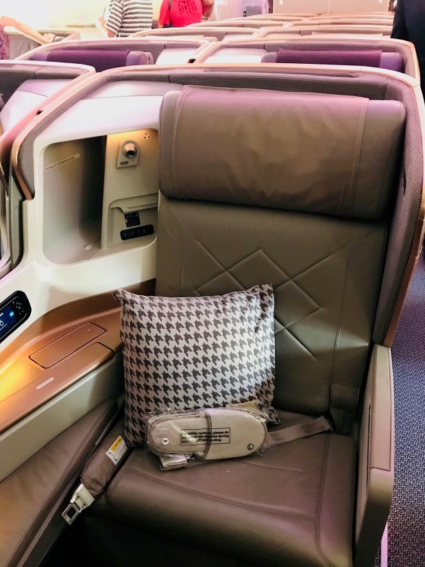 Sated, I take my Business Class seat on Singapore Airlines’ new A350-900ULR aircraft, bound for Singapore. Singapore Airlines is the launch customer of these beautiful birds, taking delivery in late-September. In October this year, Singapore Airlines used this aircraft to launch the world’s longest commercial flight between Singapore and New York, covering 16,7000km with a travel time of 18hours and 45 minutes. By comparison, I have around 8 hours on which to sip creamy Charles Heidsieck champagne, before ordering a full-bodied 2015 Bordeaux to accompany my lunch. I’ve pre-booked the lamb and it’s as plump and juicy as I remember trying on the ground. In fact, I could be at a five-star restaurant. The other great thing about the Singapore Airlines’ afternoon flight from Brisbane is that it’s a meal, movie, a nap and snack before you are touching down at Changi Airport. On board, the Business Class service is so impeccable, the crew fold and tidy your bedding whenever you rise to stretch your legs, meaning you come back to a fully-made flat-bed every time, something I’ve never experienced on any other airline.