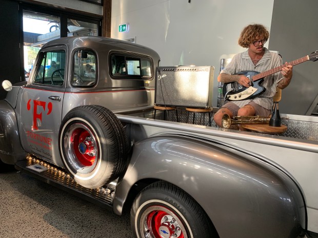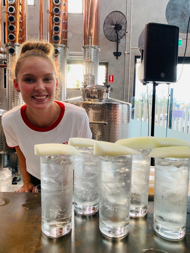 On this edgy evening, there’s a tattooed muso perched on the back of a 1954 fully, restored old school Chevy from the United States. Slick? You ain’t seen nothing yet. On the menu there’s a white malt as well as a vodka, but it’s the signature dry gin which uses eight botanicals, including North Queensland honey dew melon, which steals the show here. The dudes behind the distillery are all pointy shoes, hairy faces and tattoos but say this new venture is less about the hipster set and more about the next stage of life.