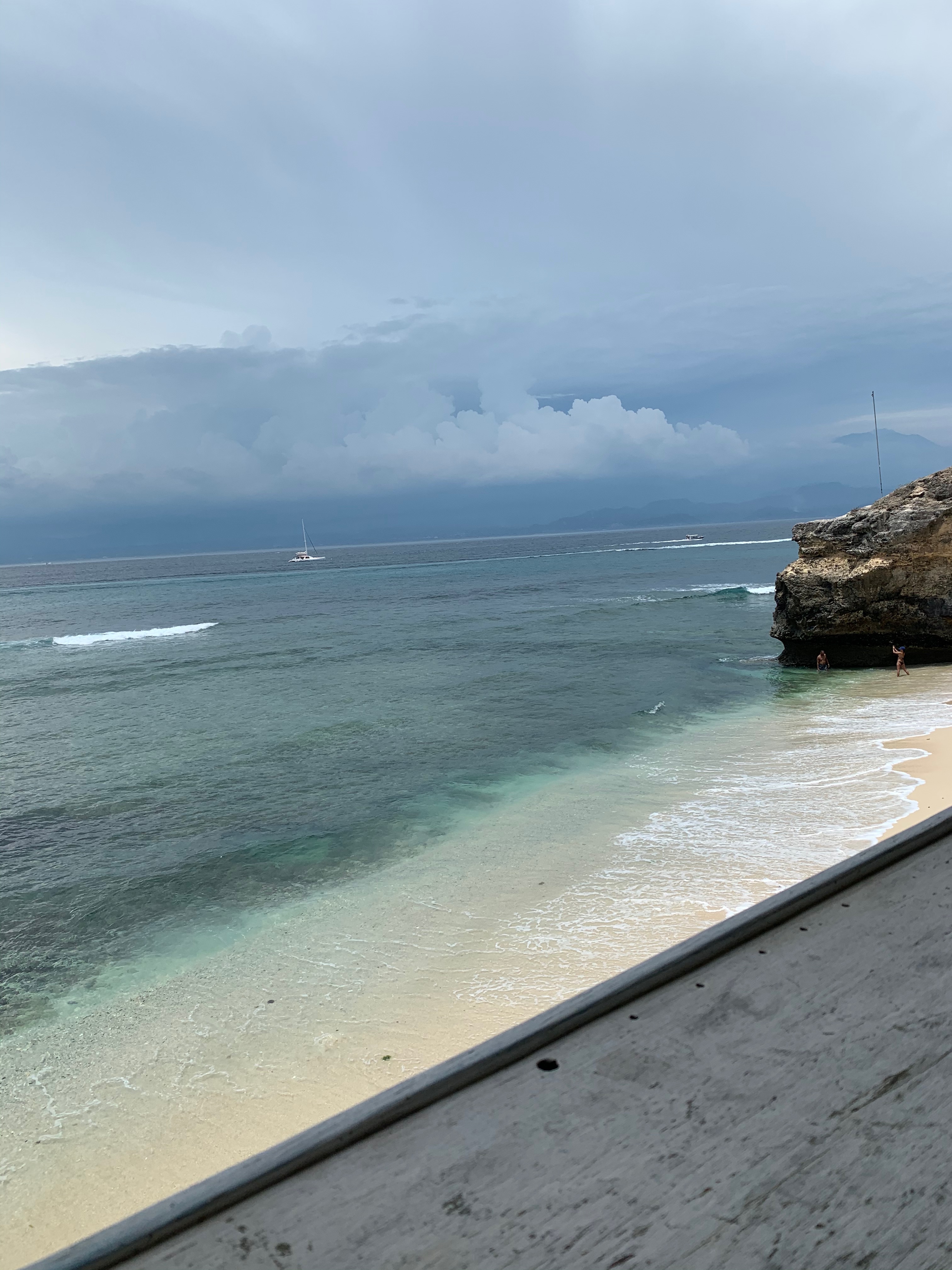 On my first week, I have established myself in a traditional thatched roof hut on the quiet side of the island. I float down the steep timber staircase each morning to banana pancakes and pungent, muddy Balinese kopi for breakfast. It’s a small, family-run resort of just eight huts and slowly, I learn to know these Indonesians who delight in my curiosity. I cuddle new baby Made and swim with her cheeky brother Gede, who is five and mischievous. I tease Grandma who scales the coconut tree with a machete. “You’re a wild woman,” I say in English. She may not understand every word, but she gets the intonation and laughs and waves at me. The hard-working Wayan takes the time to teach me even more words. I punctuate reading chapters of my book with dips in the pool in the mornings. By lunchtime, I walk two minutes down a goat track beside the beach to a café on a cliff which captures the best breezes. I eat satay sticks and sip a cold brew while watching a sassy storm grumble on the horizon. The storms will knock out the electricity most days for an hour, during which I’ll sit on the stairs of my hut and watch big, fat raindrops fall on the frangipani leaves. By late afternoon, I amble through the village to a yoga sala I’ve discovered where we’ll stretch and meditate to the sound of a mooing cow in the paddock next door.