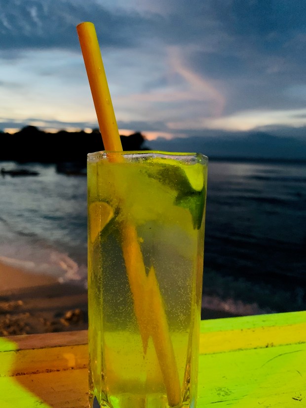 By early evening, I’ll shower in my outdoor bathroom before I’m back at my cliffside café, in time for cocktail hour. It’s all margheritas and merriment as I watch the last rays concede the day. I’ll clamber down from my perch when it’s finally cool enough, to one of the restaurants by the beach before I pluck my way in the dark back along the beachside track to my hut. I scale the staircase and climb into my bed, tuck the mosquito net around me, and redolent of childhood holidays, read by torchlight. I sleep solidly, for nine glorious hours every night, to the sound of the ocean smashing against the cliff, only to be awoken by the crow of a rooster. On days when it’s cooler, I’ll wander down potholed roads not caring where they’ll lead. I follow swirls of incense into temples. Cuddle more plump Balinese babies.