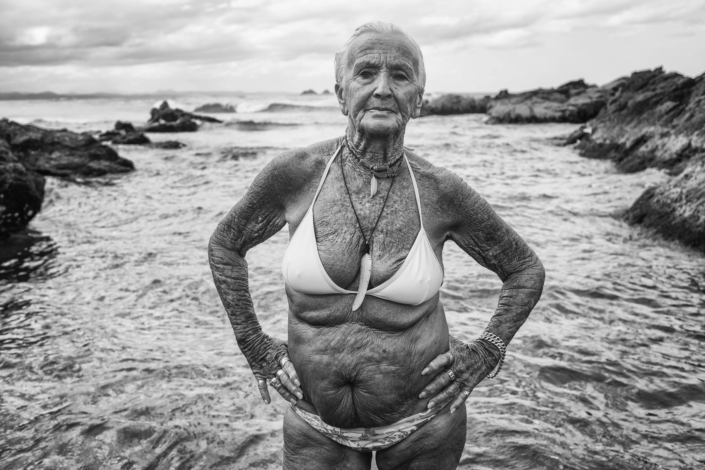In June, I took a brief break from overseas travel and relished the chance to catch up on some big writing projects. I interviewed the fabulous Feather from Byron Bay who was the subject of Natalie Grono’s award-winning photo: Feather and the Goddess Pool. Natalie had just received the People’s Choice award for this year’s National Photographic Portrait Prize. Feather, in her 70s, invited me to join her for some topless sunbaking and told me: