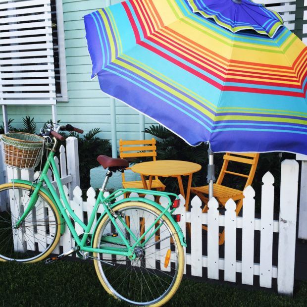 I stay in a 1950s Bilinga beach motel which has been remodelled and yet those old fibro memories remain. Despite my best efforts, there’s still sand in my sheets every night. On my last afternoon, work done for the week, I’m like that same kid that was let out of their country Queensland classroom for the summer 35 years ago. So I grab one of the hotel’s retro bicycles, slip on my togs, and pedal like mad along the oceanfront until I reach Kirra bend. I race into the ocean and frolic for an hour, bathing in those memories of being lost and found. Salt water in my hair, sea breeze on my face, I jump back on my retro bike and pedal back towards the future.